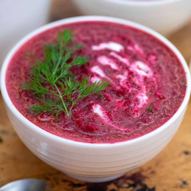 A delicious bowl of beetroot soup with dill is the perfect refreshing soup to start a meal! Follow this recipe for a creamy soup that surprises you with flavor.