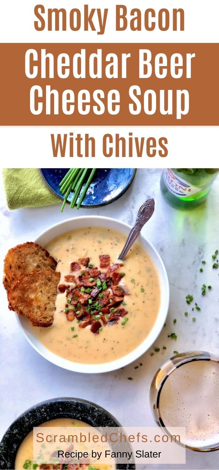 What do you do when you can’t decide between a warm bowl of cheesy soup or a cold beer? Slap ‘em together! This melty cheddar comfort bomb steeped with smoky bacon and delicate, oniony chives is a hoppy mouthful of happiness. Keep reading for the full recipe.