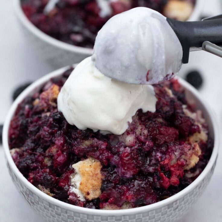 Turn three simple ingredients into a delicious cake mix berry cobbler that is the ideal easy dessert for weekend gatherings or potluck events!