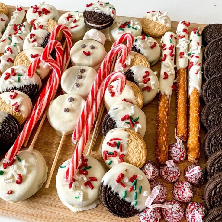 Have fun making this kid-friendly holiday Oreo cookie charcuterie board packed with delicious chocolate treats!