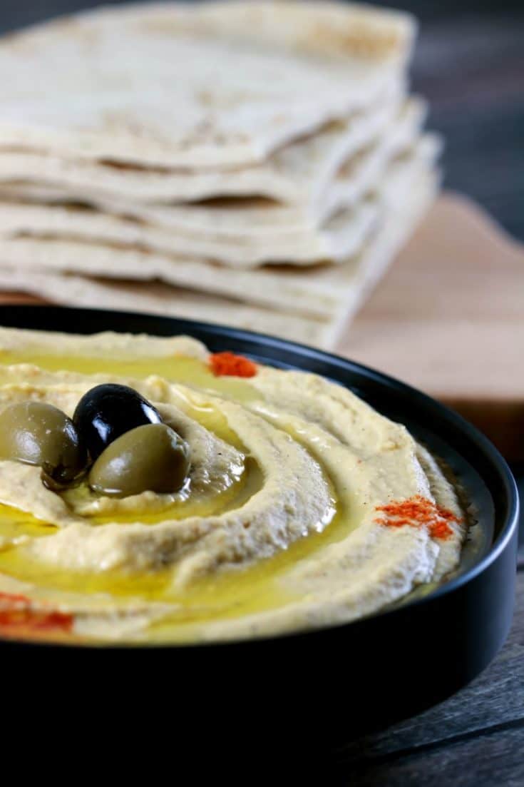 2. You can have hummus as a dip with different vegetables, or even make pita chips to go along with it. For pita chips, just cut up the pita bread into chip-sized pieces, drizzle olive oil on it and bake for 8-12 minutes at 375˚F or 180˚C. You have even add some minced garlic on top for an extra delicious flavor!