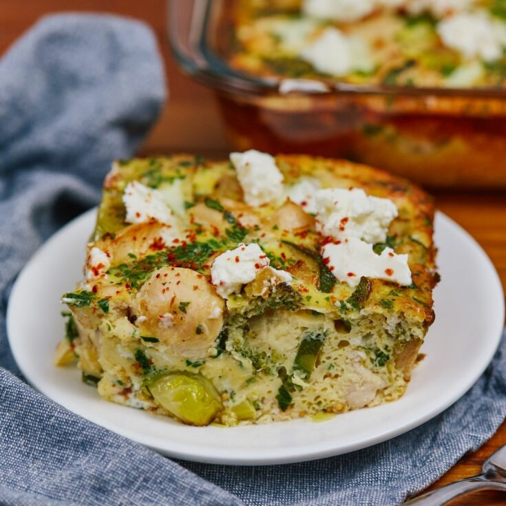 Whip up a delicious vegetable and chicken egg bake for breakfast or your next brunch. An easy protein-packed breakfast loaded with nutrients and flavor is sure to be a hit!