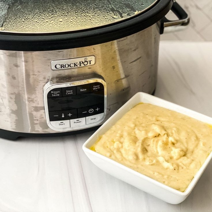 Enjoy a bowl of these delicious garlic butter Crock Pot mashed potatoes! The perfect side dish to any of your favorite weeknight meals!