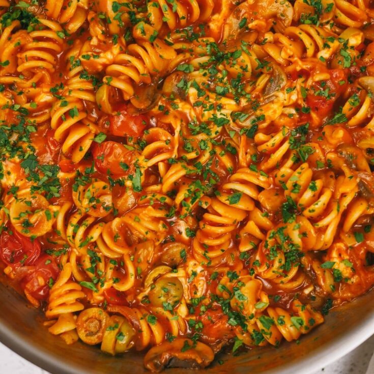 This simple one pot tomato pasta has a delicious flavor, tons of vegetables, and is ideal for a fast and easy 30-minute weeknight meal!
