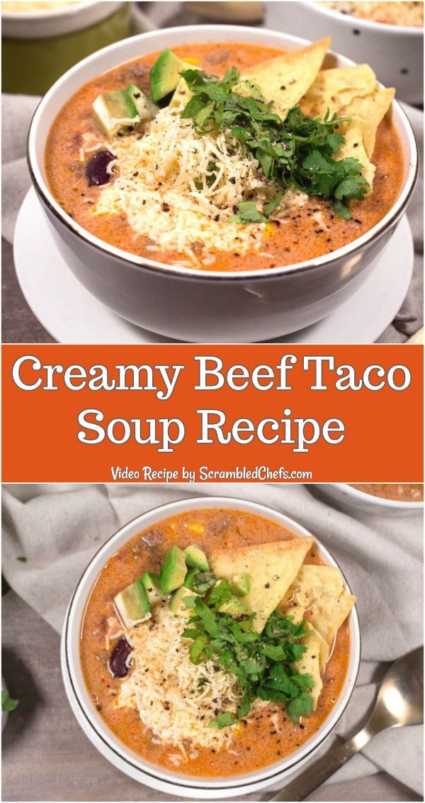 My easy and creamy beef taco soup recipe is a perfect way to warm up dinnertime with tons of flavor. Make this in no time and keep everyone at the dinner table happy!