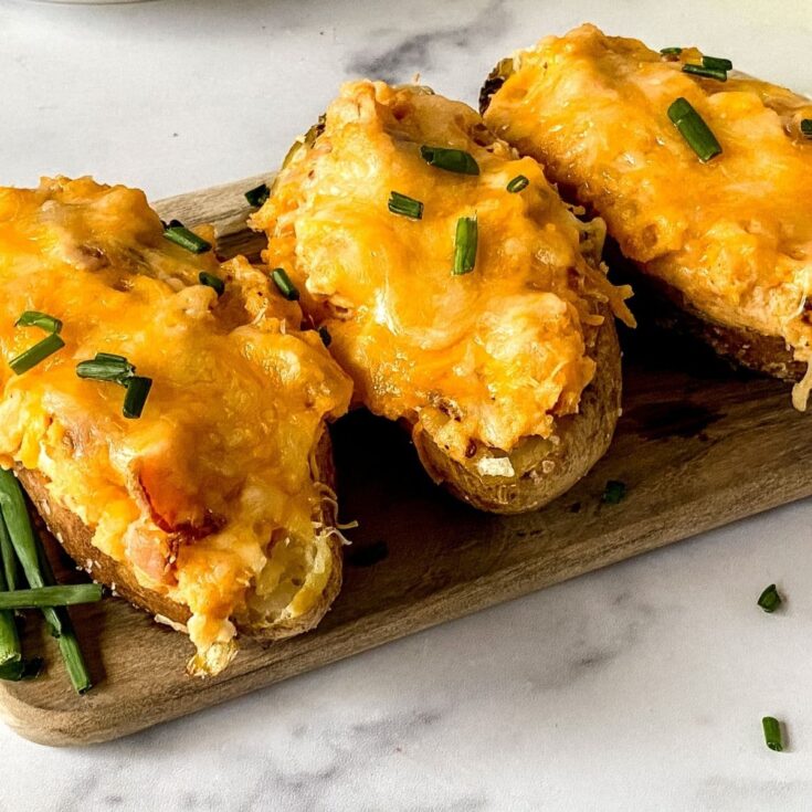 Make these cheesy twice-baked potatoes to serve alongside any of your favorite meals or to enjoy as a meal in itself!
