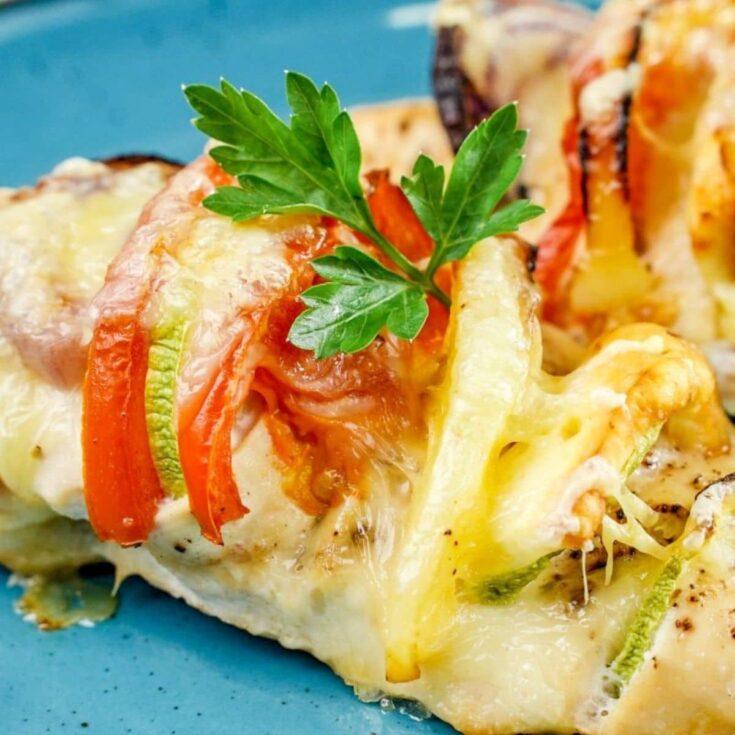 Delicious primavera stuffed chicken is a perfect weeknight dish that is packed with flavor and keto-friendly!