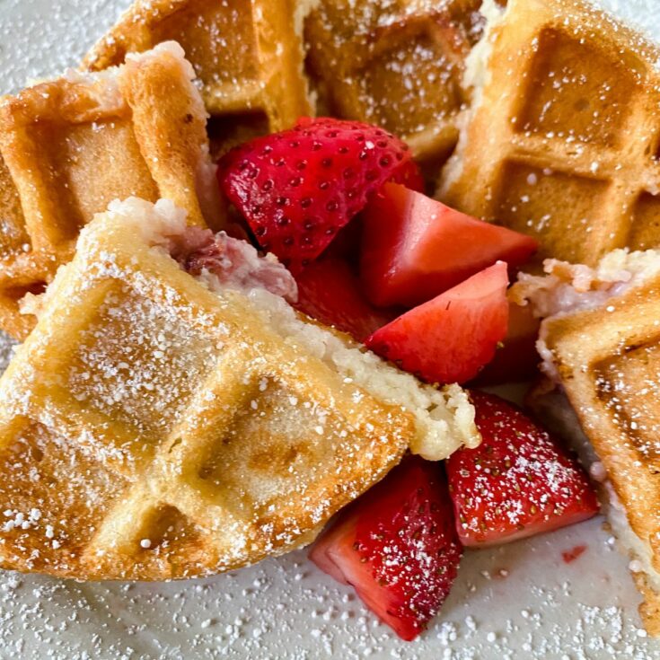 Make strawberry cheesecake stuffed waffles for a unique twist on two favorite foods! A perfect sweet breakfast to start your day!